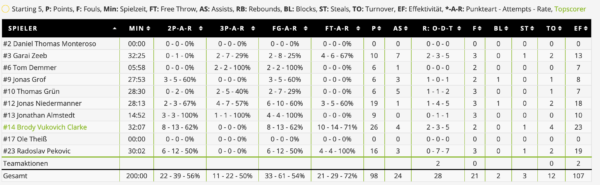 Thomas Grün had 6 points, 5 assists and 2 rebounds in 28 minutes on the court.