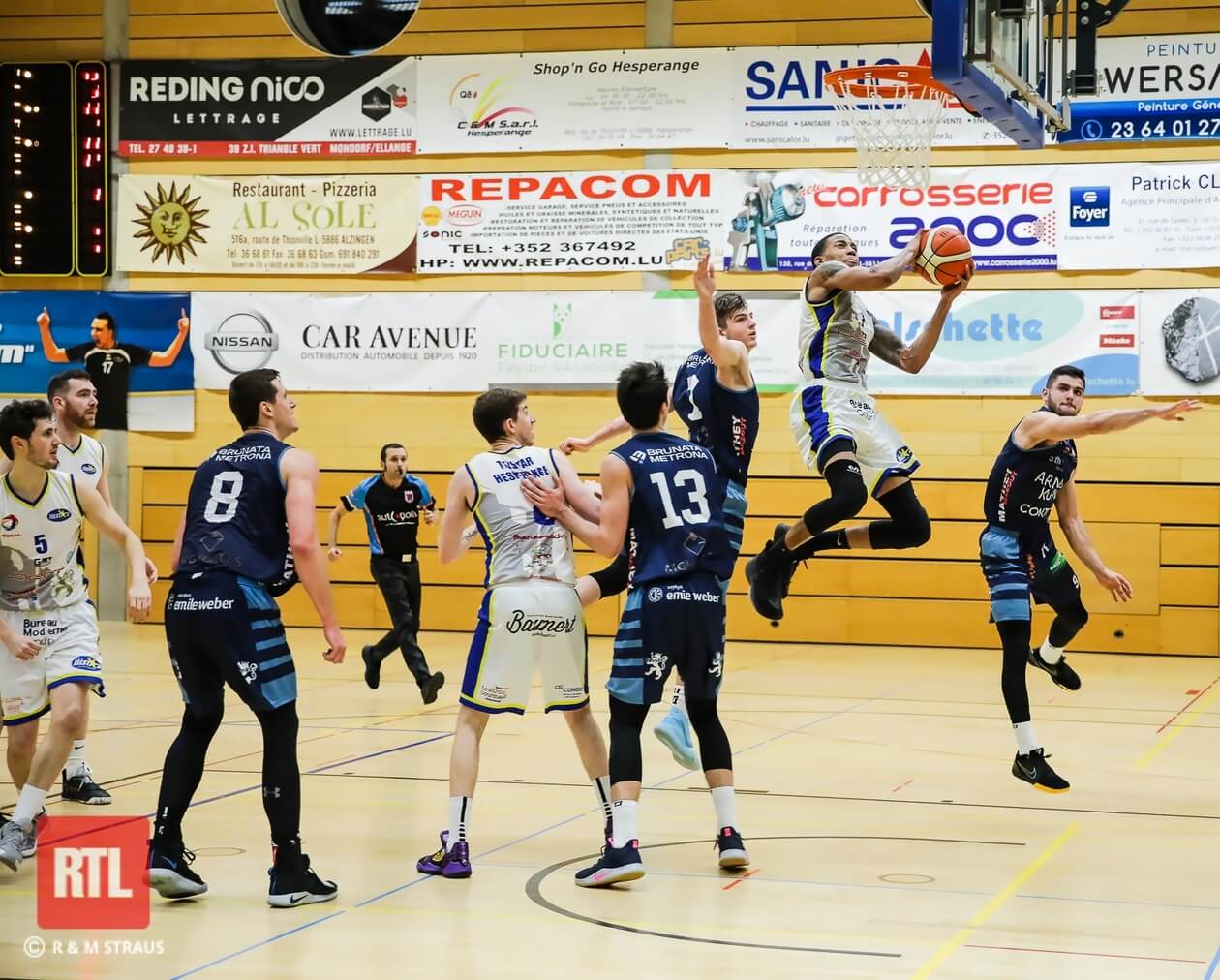 Den Telstar Hesper huet um Samschden eng weider wichteg Victoire gefeiert. Mat 90:86 huet sech d’Ekipp vum Trainer Gabor Boros géint den direkte Konkurrent Résidence Walfer duerchgesat, dat no Verlängerung. Dobäi huet de Profispiller Wayne Foster (op der Foto mam Ball) en “triple-double“ markéiert: 19 Punkten, 17 Rebounds, 10 Assists, zudeem hat den 2. Profi Jefferson 36 Punkten.