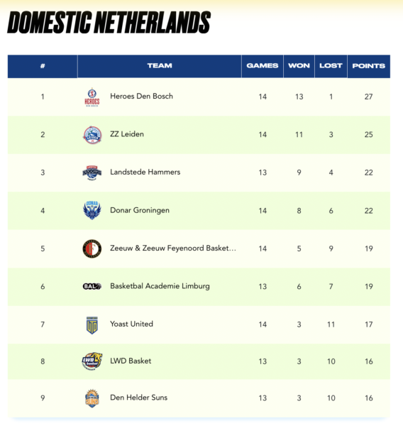 Standings (teams from the Netherlands)