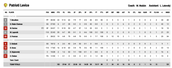 Ben Kovac and his team Patrioti Levice were able to beat Handlova on Sunday evening, the final score was 105:68. Our national team player scored 16 points and added 4 rebounds and 1 assist.
