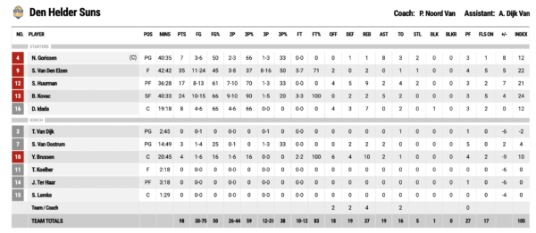 Ben Kovac and his team Den Helder Suns lost in overtime on Sunday, the final score was 98:99 against the Landstede Hammers.