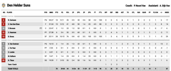 Ben Kovac and his teamm Den Helder Suns lost 78:82 on Sunday against Feyernoord Rotterdam.