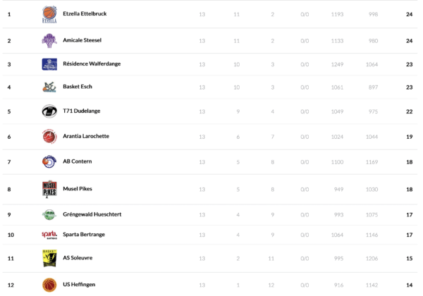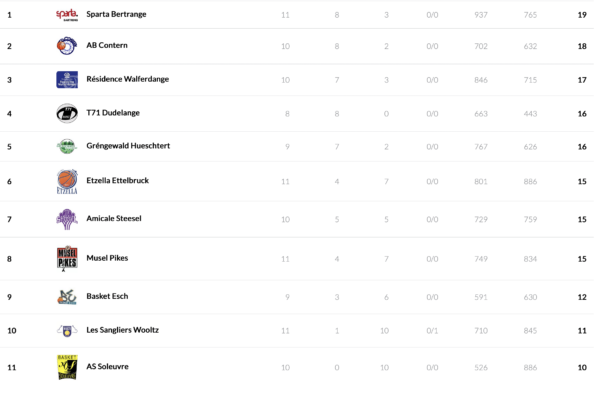 In the women’s league,10 teams are in action this weekend. Current league leader Sparta hosts Basket Esch on Sunday while the only unbeaten team T71 Dudelange does not play this weekend.