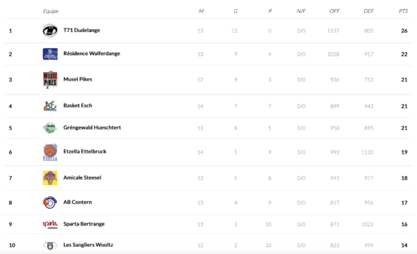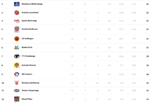 In the women’s LBBL, Amicale will host Wiltz on Friday-evening, the other 3 games are scheduled for Saturday. T71 is looking to win its 14th game in a row against Résidence, clearly one of the more challenging opponents in the women’s LBBL. Basket Esch and Etzella are already in the winter break as both teams have played 14 games and no more scheduled game in December.