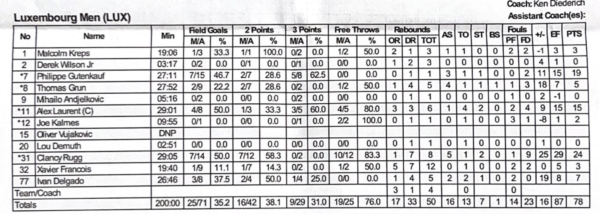 Clancy Rugg (24 points), Philippe Gutenkauf (19) and Alex Laurent (15) scored in double digits for team Luxembourg.