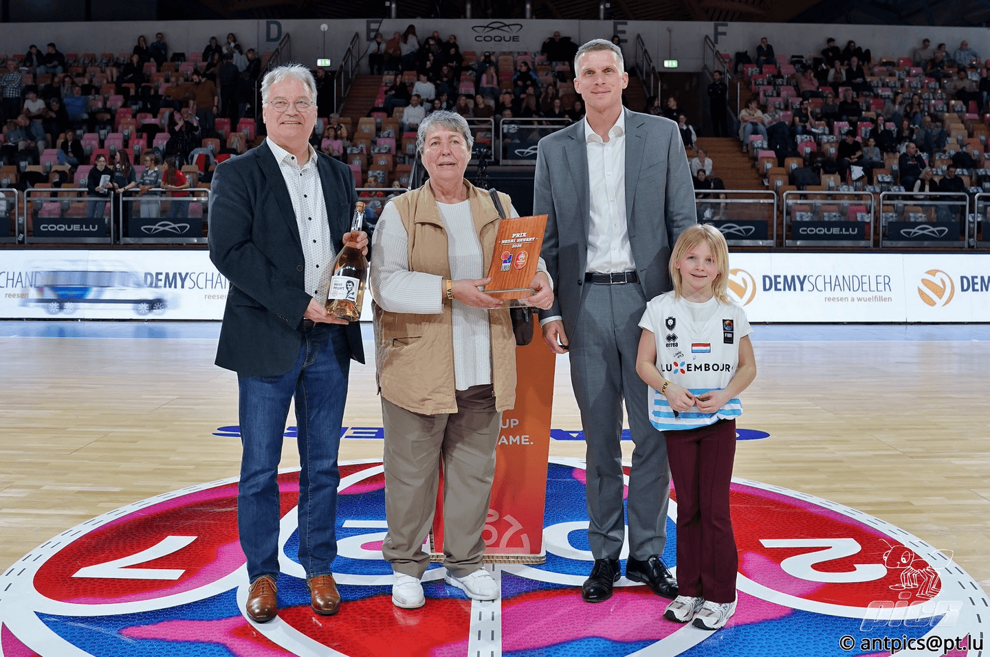 At halftime of the game Luxembourg – Ireland on Wednesday, Marion Grethen was honored with the special « pric Henri Heyart » by the FLBB. This award was introduced in 2025 to honor one person with high accomplishments as part of the season awards. Marc Mouton was the first person to win the award.