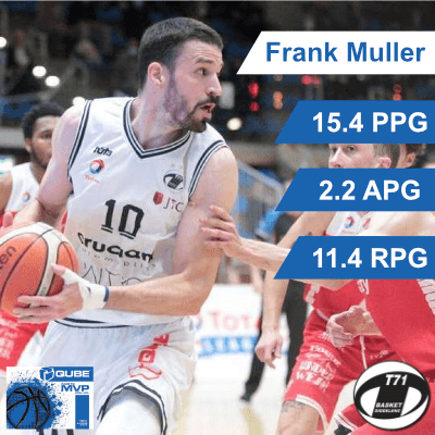 Muller is still leading this race after putting up double-doubles on a regular basis. Furthermore, he had a rare game-winning buzzer-beater against Racing, one of the highlights of the season so far.