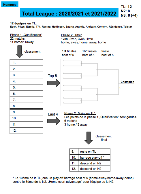 –> Es bleibt bei 3 Ligen (Total League, Nationale 2, Nationale 3)