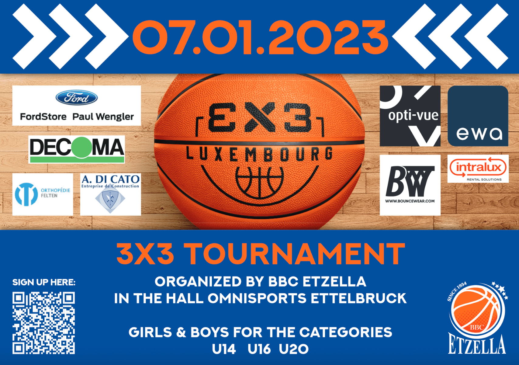 BBC Etzella will be hosting its second 3×3 tournament in Ettelbruck at hall omnisports “Frankie Hansen”. The tournament is a FIBA-endorsed event and will be taking place on Saturday 7th January 2023.