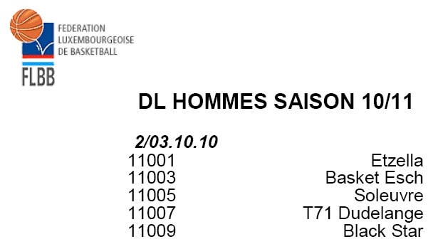 Programme des matches du tour de qualification Diekirch League, N2 et N3 Hommes et Dames de la saison 2010/11.