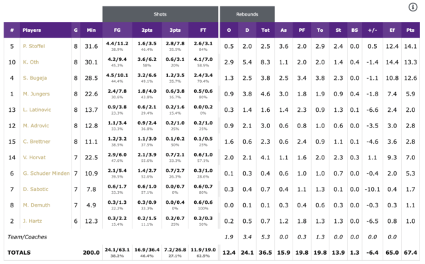 The team’s aggressive playing style was evident in their statistical achievements. They ranked 3rd in steals, averaging 13.9 steals per game. They recorded performances with 20 steals in two games against Switzerland and Iceland (4th best value). Individually Philippe Stoffel (2,4 spg), Viktor Horvat (2,3 spg), and Sean Bugeja (2,3 spg) finished 13th and 15th in steals.