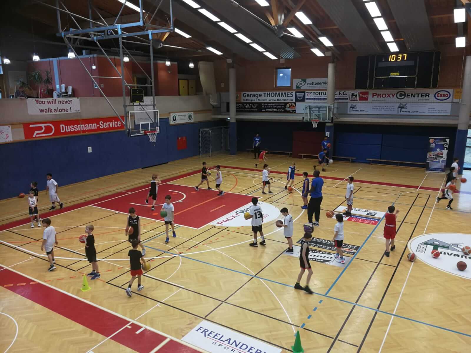 Ab 9h30 waren ronn 80 Kanner an der Hal “Filano“ aktiv. Wéi bei all Camp stoungen och haut Statiounen vun den Basket Fundamentals (Ballhandling, Passen, Shooting, Athletik) souwéi Matcher um Programm.