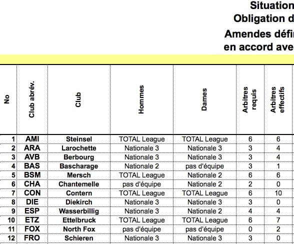 Obligation des Clubs en matière d'arbitres – Amendes définitives pour la saison 2012/2013