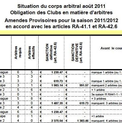 Résumé de la situation provisoire du Corps Arbitral pour la saison 2011/2012