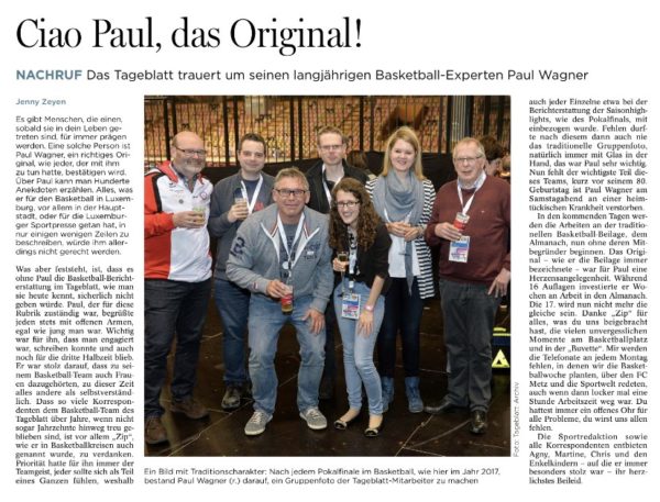 De Paul Wagner, Generalsekretär vum Sportpressverband, an langjärege Journalist, ënner anerem beim Tageblatt, wou hien am Basketberäich ganz aktiv war, ass e Samschden verstuerwen.