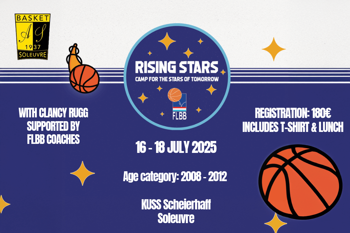 Another edition of the FLBB rising stars camp will take place in Zolwer from July 16th until July 18th. Kids of the age categories 2008-2012 can register.