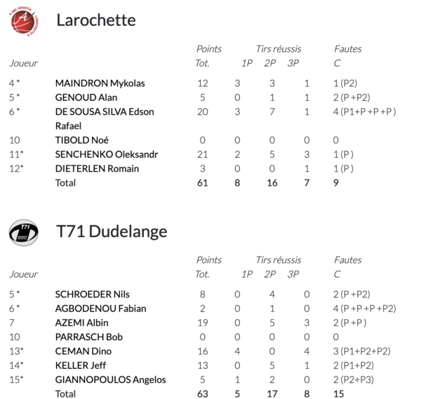 In the men’s category, Dudelange won a close game against Larochette, the final score was 63:61. Albin Azemi scored a team-high 19 points for Dudelange.