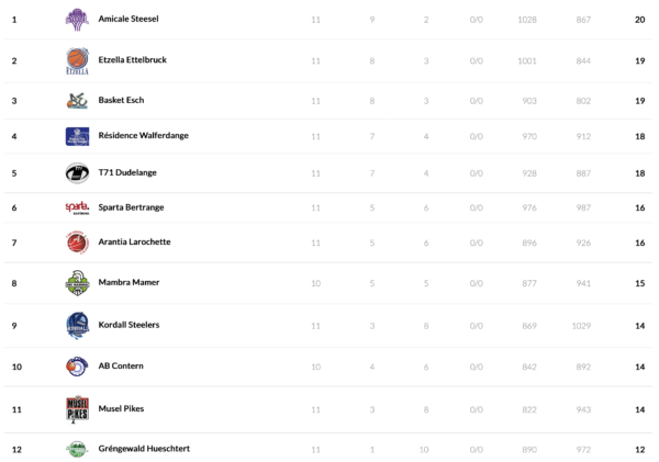 In the men’s LBBL, Amicale Steinsel and Basket Esch want to bounce back after getting eliminated in the cup competition during the week.With a road victory, Basket Esch could jump to the top of the standings and tie with Amicale in the standings. Etzella and Résidence were able to advance to the semi finals during the week, now they face each other on Sunday while the guests from Walfer have a chance to tie with the opponent in the standings.