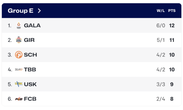 In the standings, Carolo is last to enter the round with 8 points, teams need to classify on places 1-4 in their group to enter the next round of the competition.