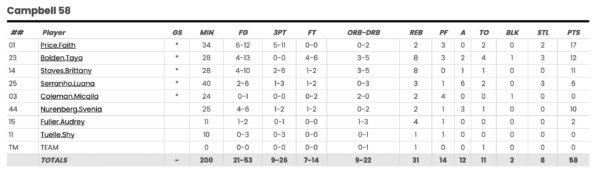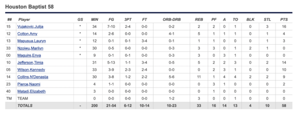 Julija Vujakovic and her Baptist university also came up with a win this week, 58:49 against New Orleans. Vujakovic led her team in scoring with 16 points, she added 3 steals and 2 rebounds.