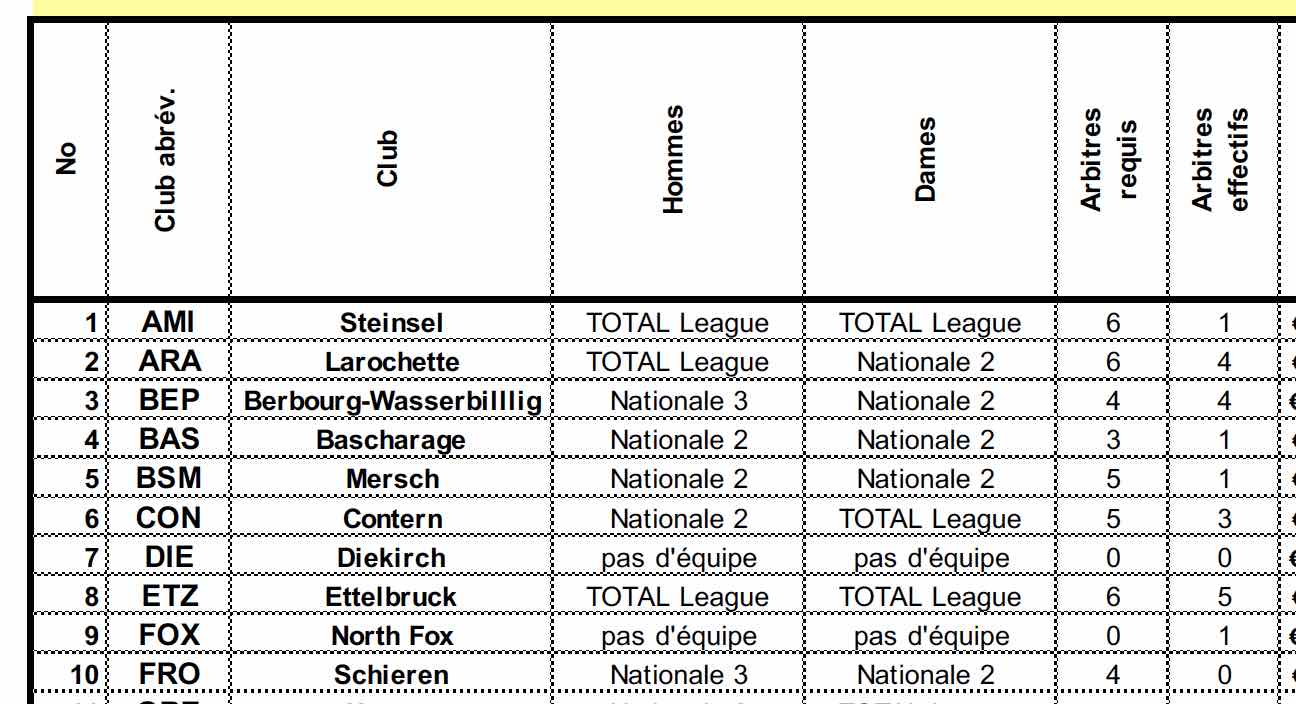 Obligation des Clubs en matière d'arbitres (Art. RA-41)