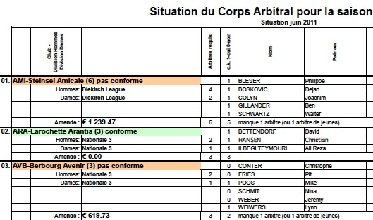 Situation du Corps Arbitral pour la saison 2011/2012 avant les cours de formation pour arbitres de jeunes du 08 et 10 juillet 2011