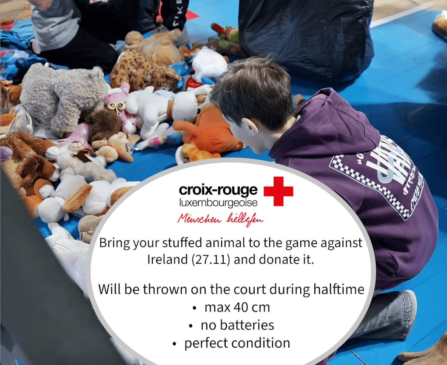 The Luxembourg Basketball Federation is pleased to announce that it is organizing a solidarity action during the next international match of the men’s national team against Ireland, which will take place on November 27th, 2025 at the Coque in Kirchberg.