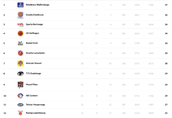 –> With these results, thre play-off race stays interesting and will be decided on the last gam-day in 3 weeks between the Musel Pikes, Contern and T71. Right now, the teams will be on a break because our national team will play on February 27th. ( roster –> Ken Diederich announces roster for game against Albania on February 27th )