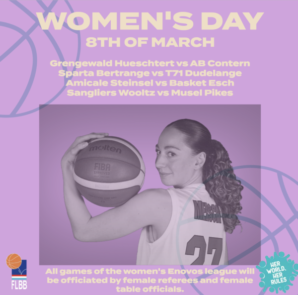 On Saturday (March 8th), all women games in the women’s Enovos League will be officiated by female referees. In addition, all table officials will be female in order to promote the women’s Day.