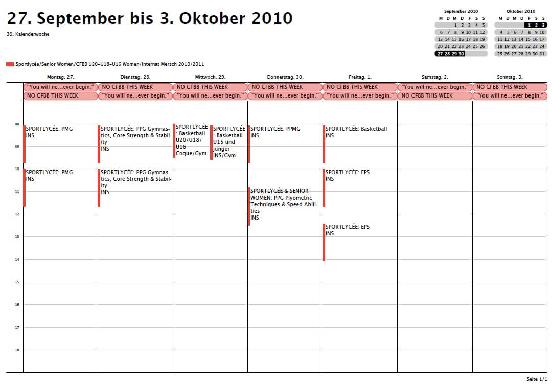 Sportlycée Wochenplan
