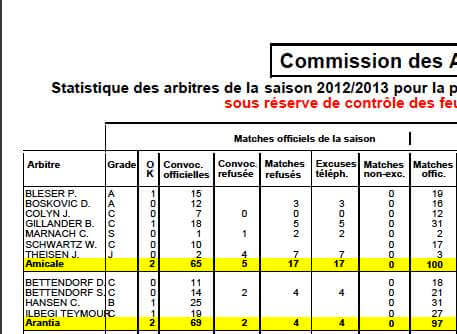 Statistique des arbitres de la saison 2012/2013 pour la période du 01/07/2012 au 23/11/2012