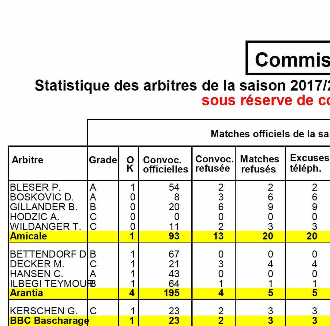 Statistique des arbitres de la saison 2017/2018 pour la période du 01/07/2017 au 12/07/2018