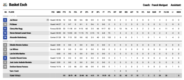 – Kalmes (35 points) and Taylor (34) were the main scorers for Dudelange