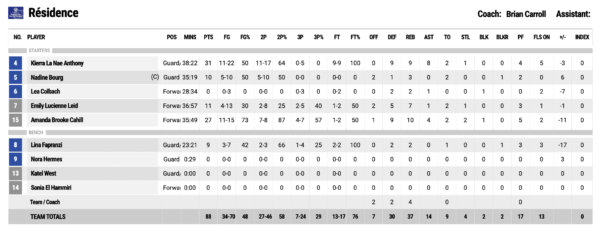 – T71 hit 9/20 3-pointers in the first half, Résidence did not shoot a free-throw before half-time