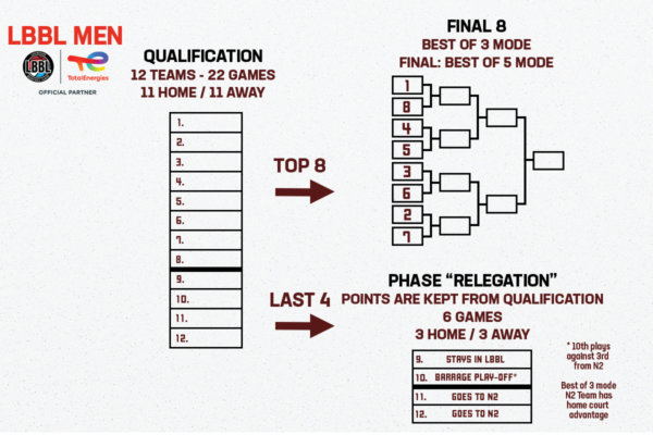 The season 2022/23 is only a few weeks away. The game mode has slightly changed, let’s take a look at the game mode of the LBBL (women/men) and National 2 (women/men).