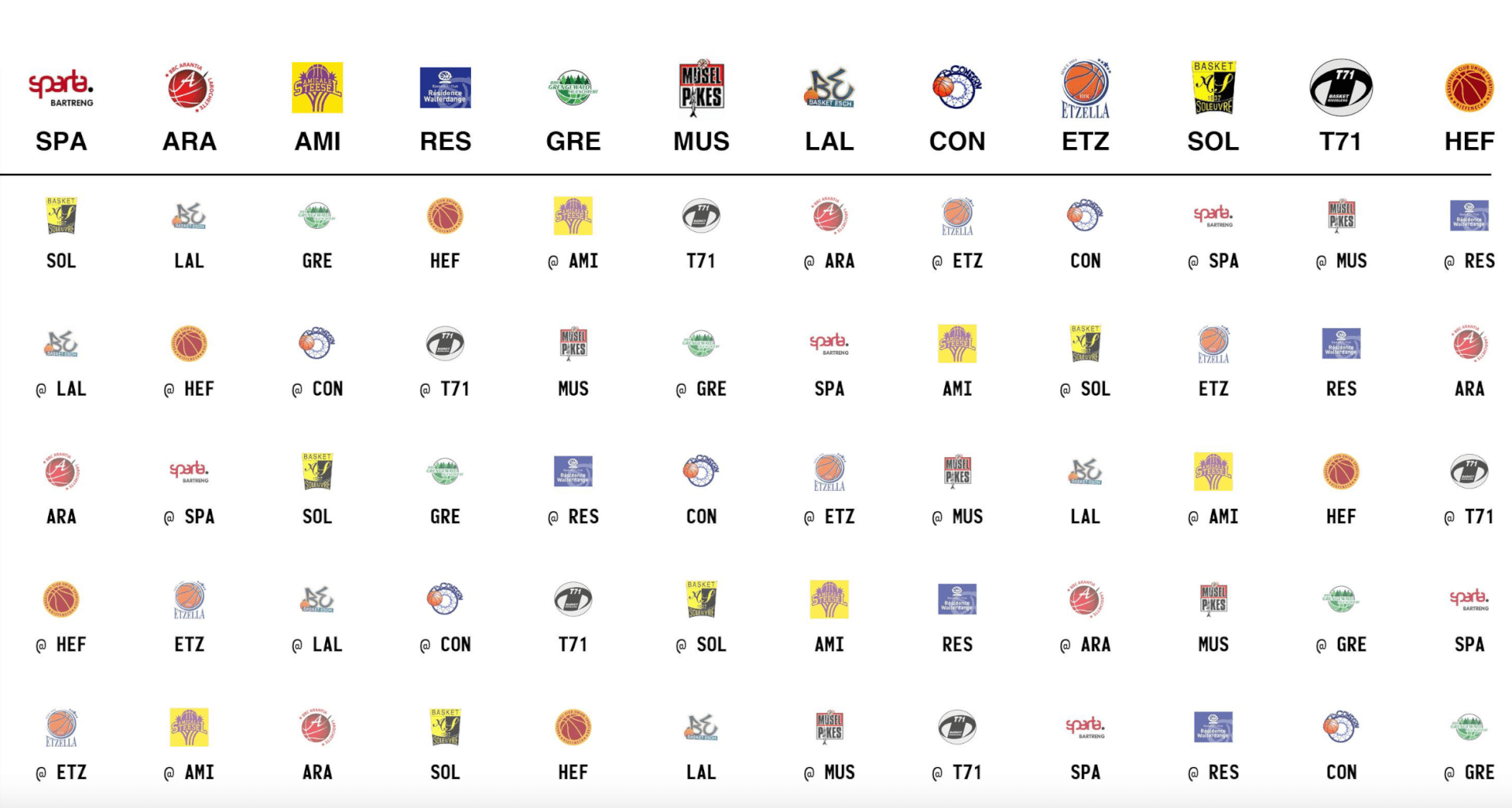You can see the full scheduled (LBBL women and men, National 2 women and men, National 3 men) below: