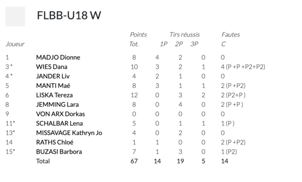 We won the first game, and the team showed a clear improvement compared to last weekend. The girls won three of four quarters. We lost our momentum briefly in the third quarter (too many turnovers against an aggressive defense), but we responded strongly in the final quarter (14-4). All players played. They want to step it up a notch tomorrow. (23:21 / 16:10 / 14:22 / 14:4)