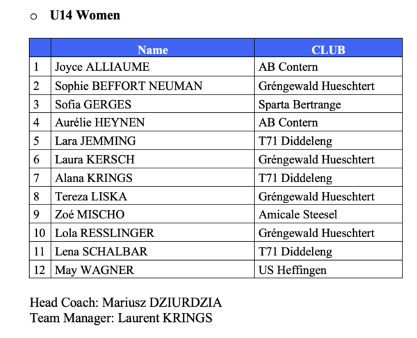 Here is the roster of our team, the team will be coached by national team head-coach Mariusz Dziurdzia. Gréngewald Hueschtert has the most players (4) in the team followed by T71 (3).