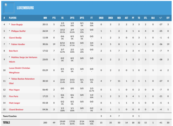 Game stats –> box score Luxembourg – Iceland U16 boys