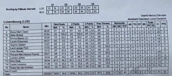 Our U16 women played a preparation game against the U16 team from Belgium. Luxembourg lost 42:89 in the end, you can take a look at the stats of our women here: