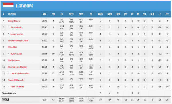 Laetitia Schumacher led Luxembourg with 17 points, Kyra Coulon added 10 points.