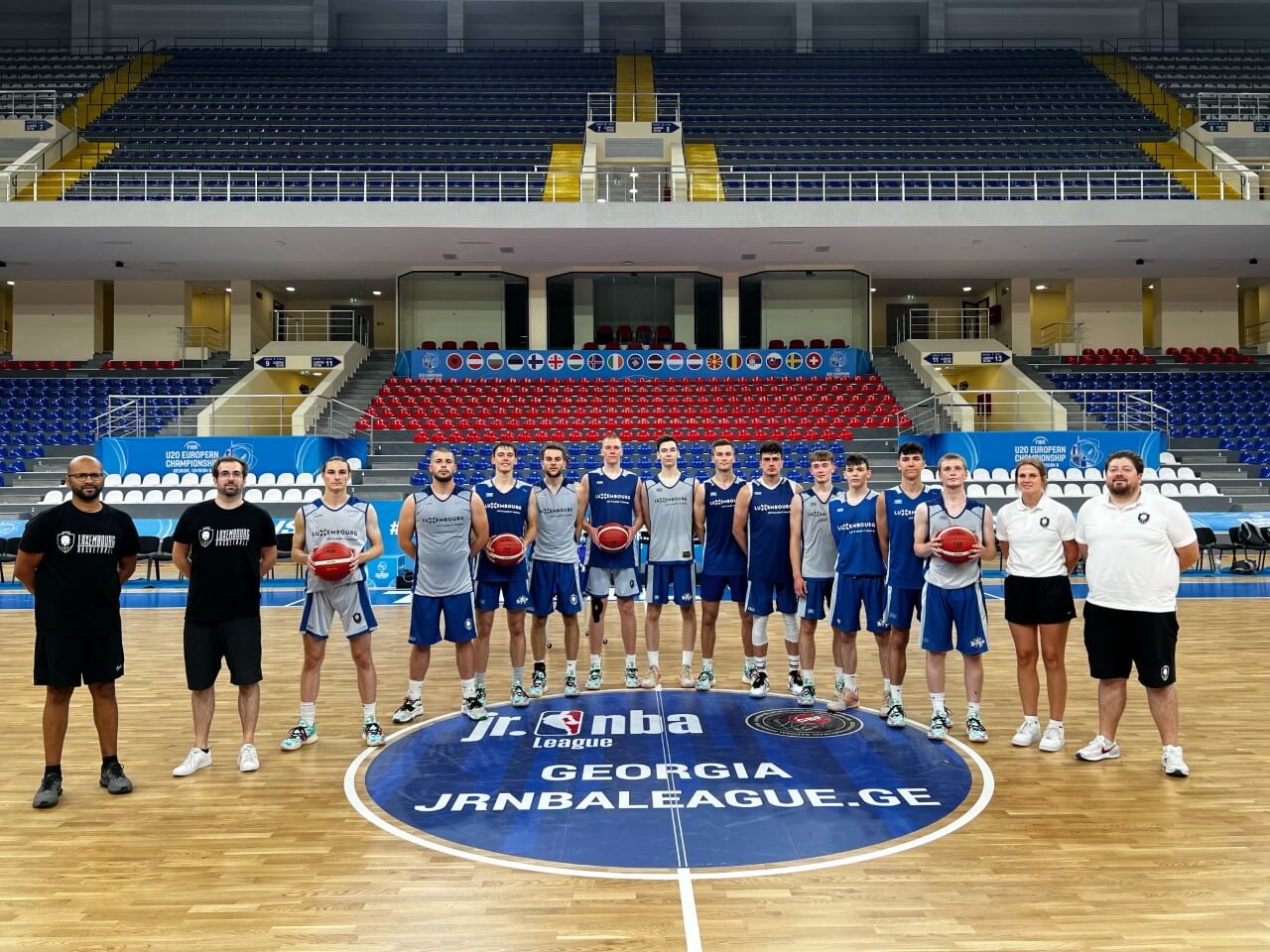 On Thursday, our U20 Men National Team traveled to Georgia to participate in the FIBA Europe U20 Division B Championship. For 10 days, 19 teams will play for the championship and the possibility to move up to Division A. Teams are divided into 4 groups. Luxembourg was drawn into Group A where they will face the Netherlands, Romania, Iceland and Estonia.