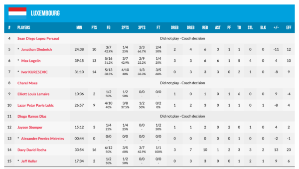 Davy Rocha (16 points), Ivor Kuresevic (14), Max Logelin (13) and Jonathan Diederich were the main scorers for the FLBB-squad.