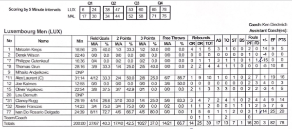 Our men had the same opponent on Thursday and came up with a victory over the hosts too. After trailing by 10 points early in the game, Luxembourg had a strong second quarter to take a 47:44 lead into the break. In a very interesting final quarter, the last seconds became decisive. Clancy Rugg hit a big shot to give the FLBB squad the lead with one minute remaining (video). Ivan Delgado led Luxembourg with 20 points.