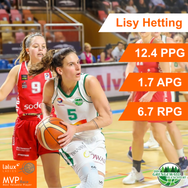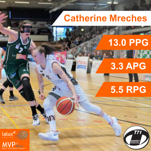 Together with our sponsor LALUX, we present the rubric “LALUX JICL MVP race“ for women players. Once every month, we take a look at the evolution of the best JICL players of the Total League in a ranking. The final winner of the award will be announced at the end of the season. This edition is the second episode, there was one change as Lou Mathieu (AB Contern) entered the top 5, the top 4 players are unchanged as all players continued to play on a very high level.