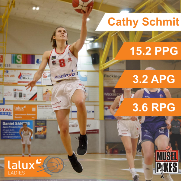 –> Cathrin has had a great start into the season. She is averaging 7 points and 6 rebounds for the defending champions from Ettelbruck.