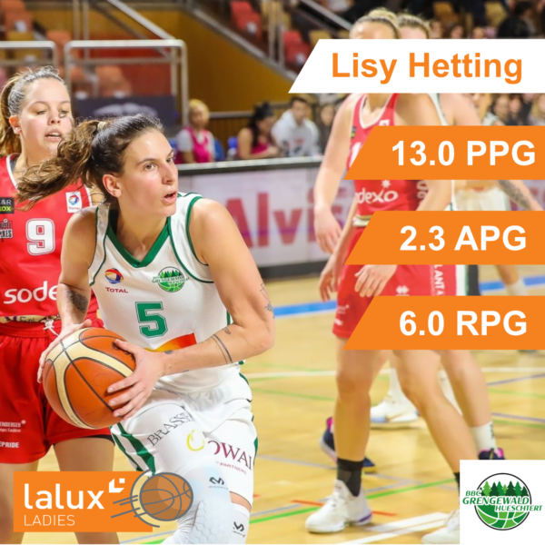 –> Lisy is showing that doing sports on a high level while being a mother is possible. With 13 points per game, she is second in that category, she also has 2.3 assists per game. On top of that, she had a strong performance in Gréngewald’s Euro Cup game in Namur.